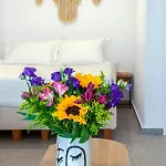 يحتوي مكان الإقامة على أدوات تحضير القهوة والشاي والمطبخ المجهز بالغلاية الكهربائية والبرَّاد ومحمصة الخبز. يقع ميكونوس على بعد 5 كم من مكان الإقامة. يساعد وجود ركوب الخيل الضيوف على تنويع أوقات الفراغ النشطة.